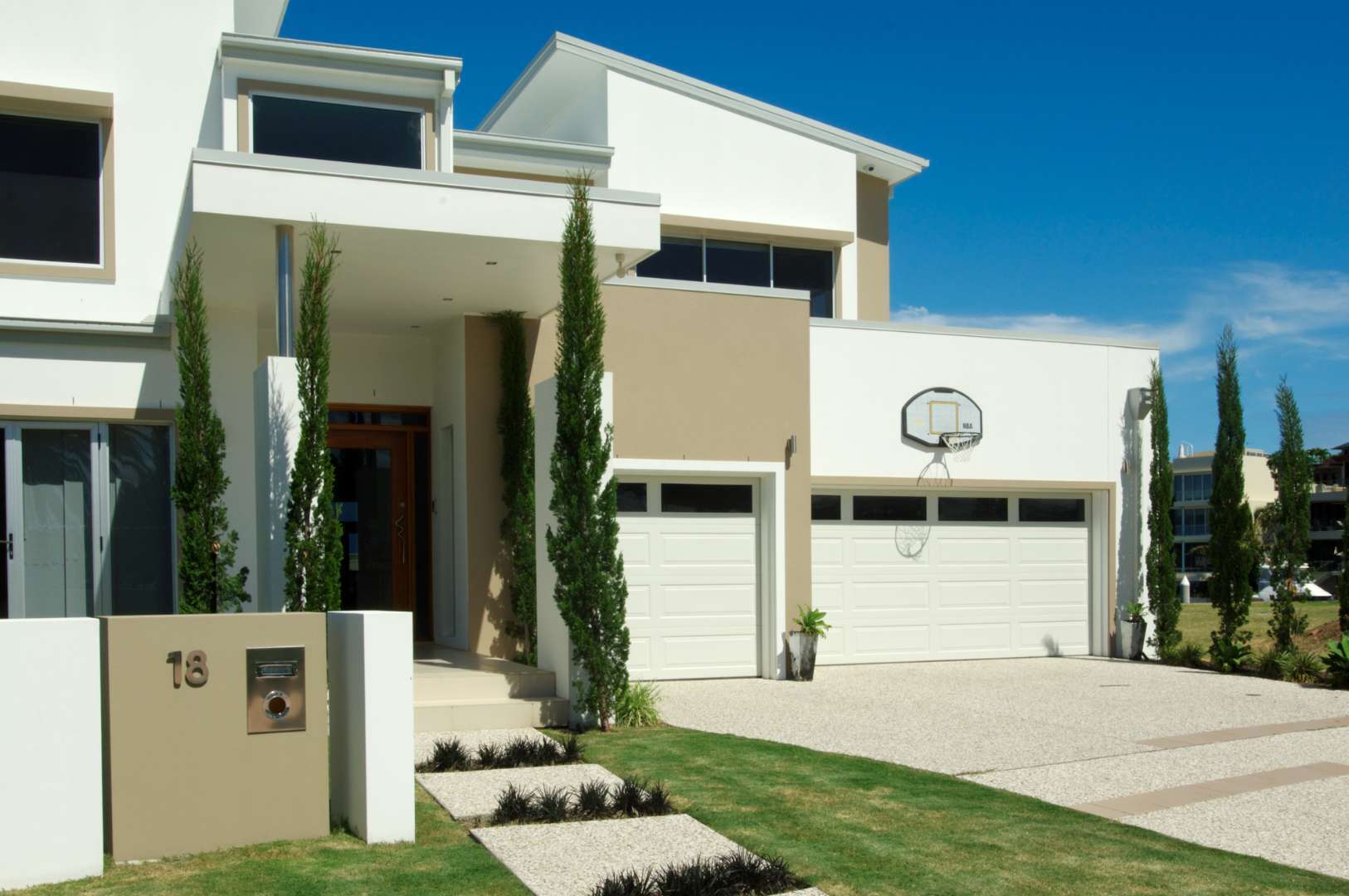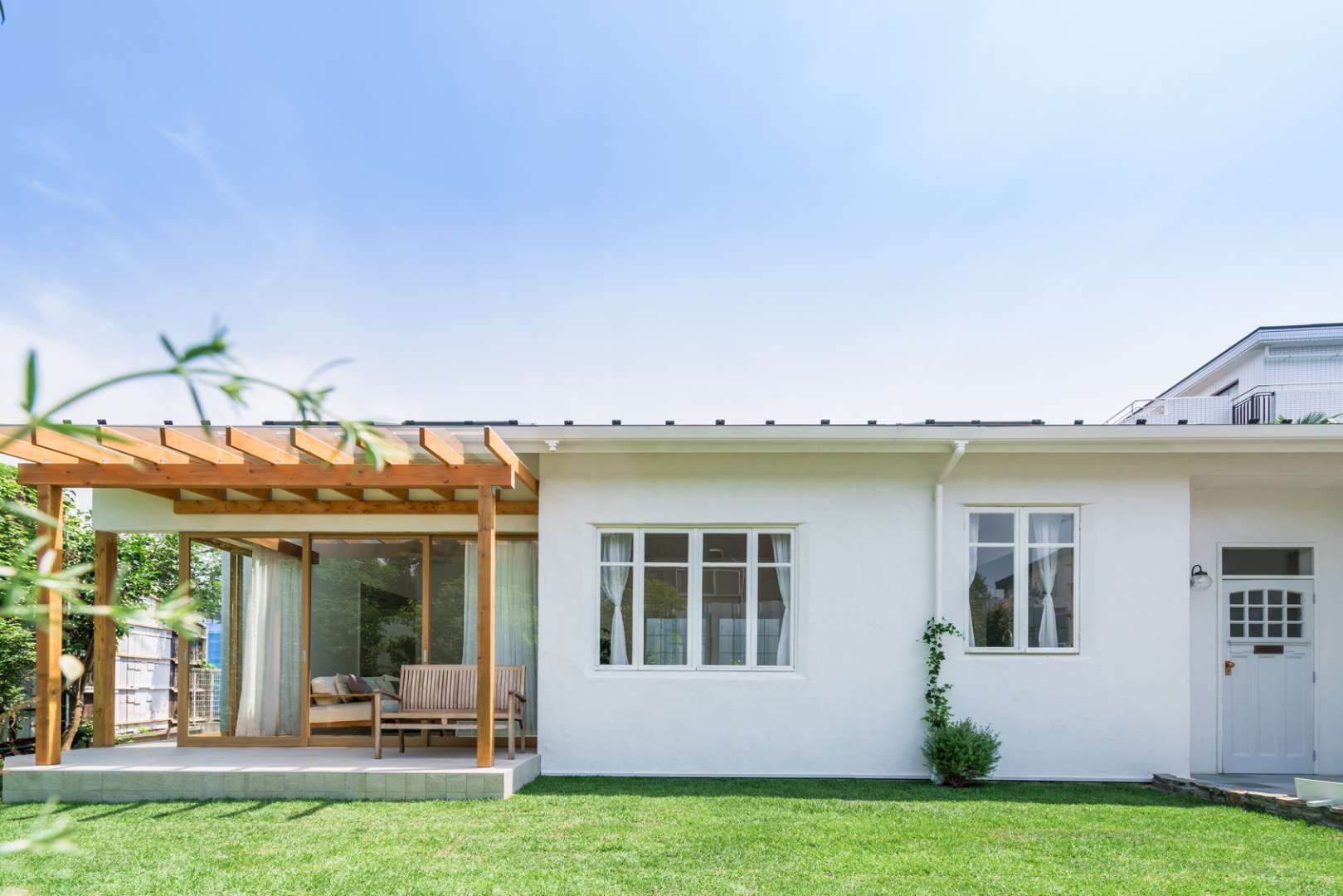 また、「ミニマルデザイン」も非常に人気です。 シンプルで無駄のないデザインは、見た目の美しさを高めるだけでなく、掃除やメンテナンスが簡単のため、実用性も重視しています。菜花壇やシンプルなフェンス、モダンな照明を交えて、洗練された外観になります。